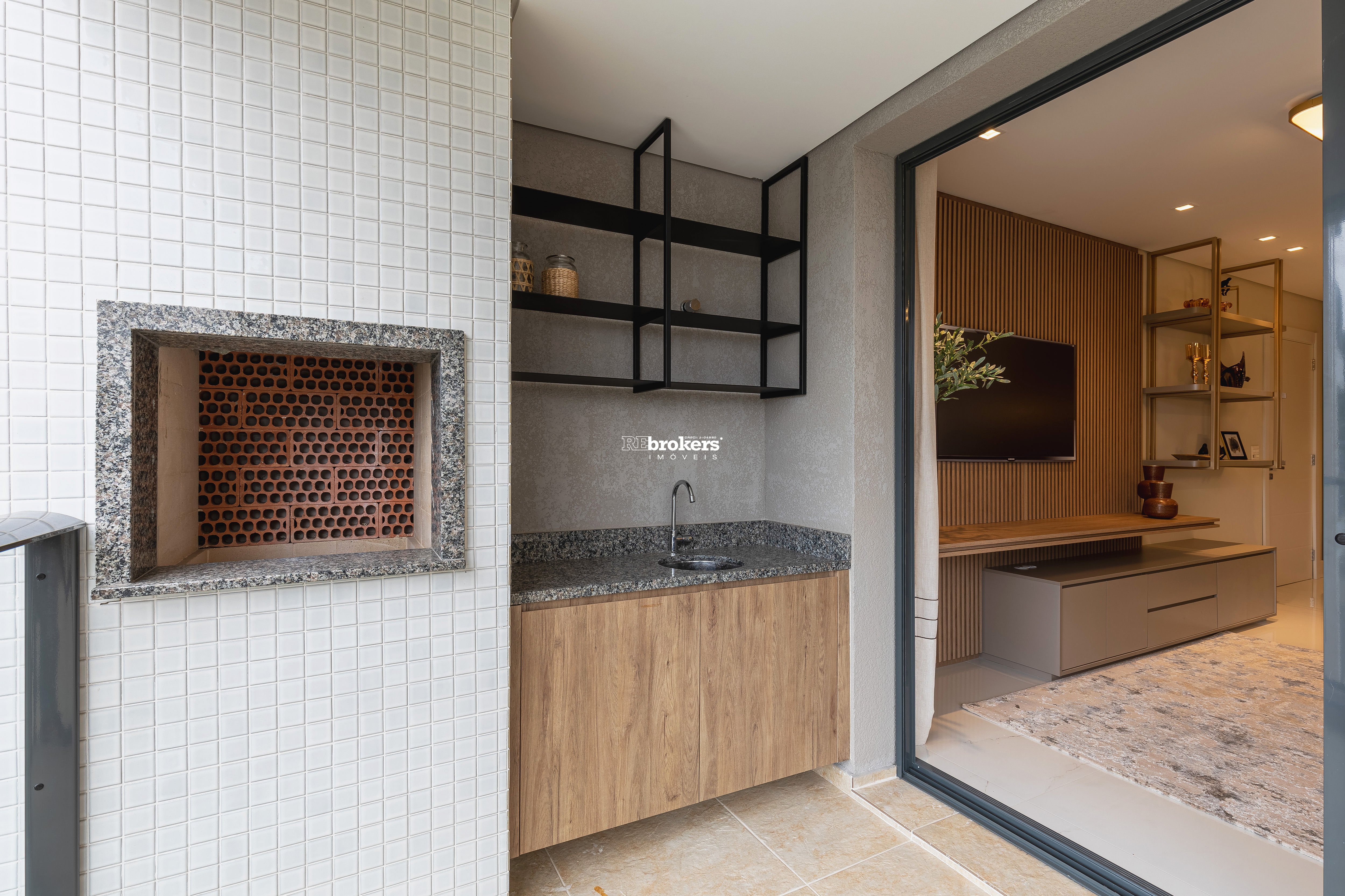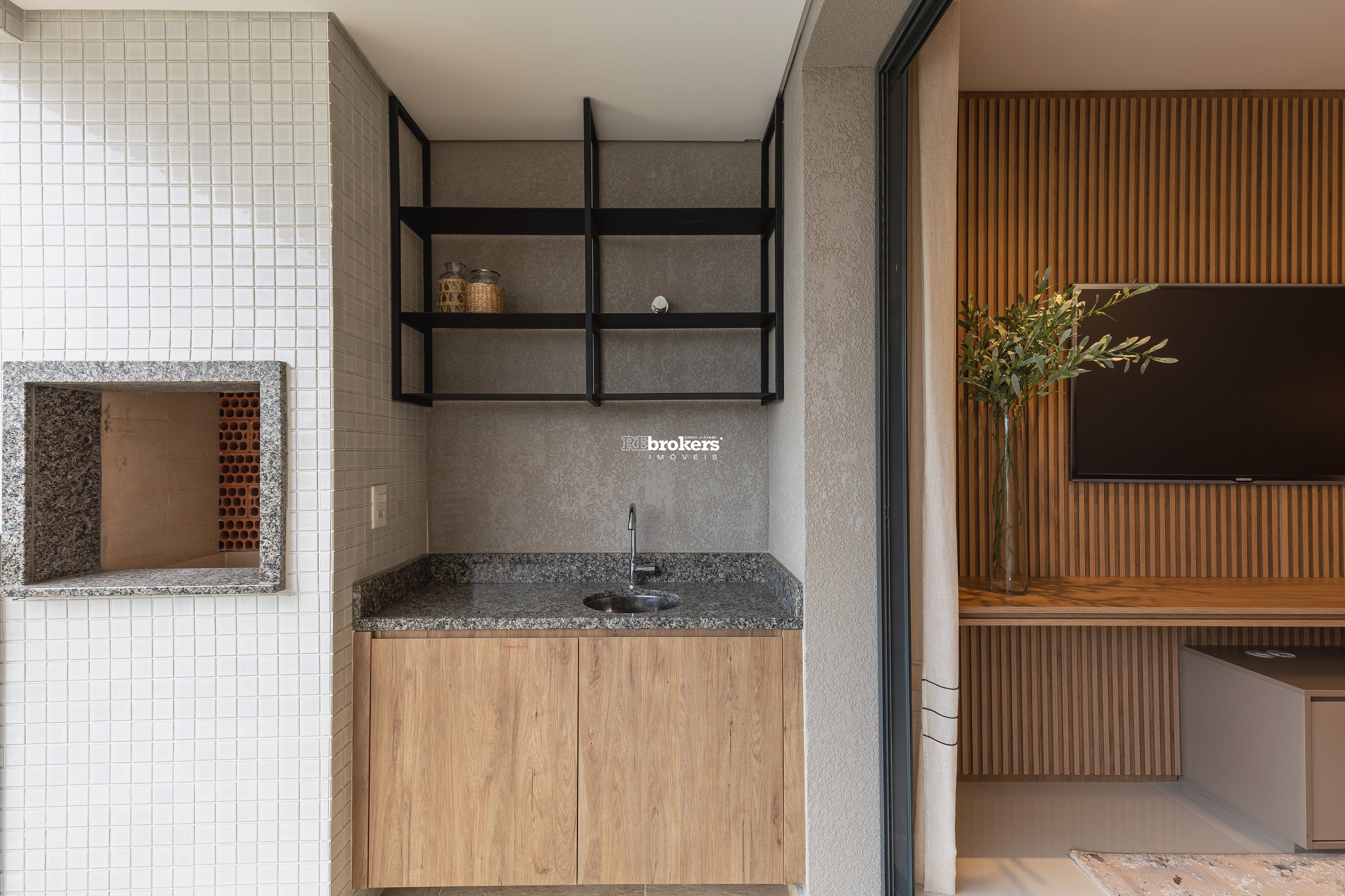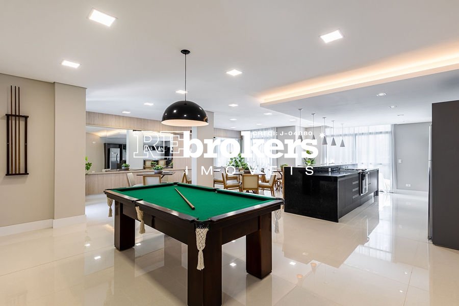 Salão de jogos integrado ao salão de festas com churrasqueira
