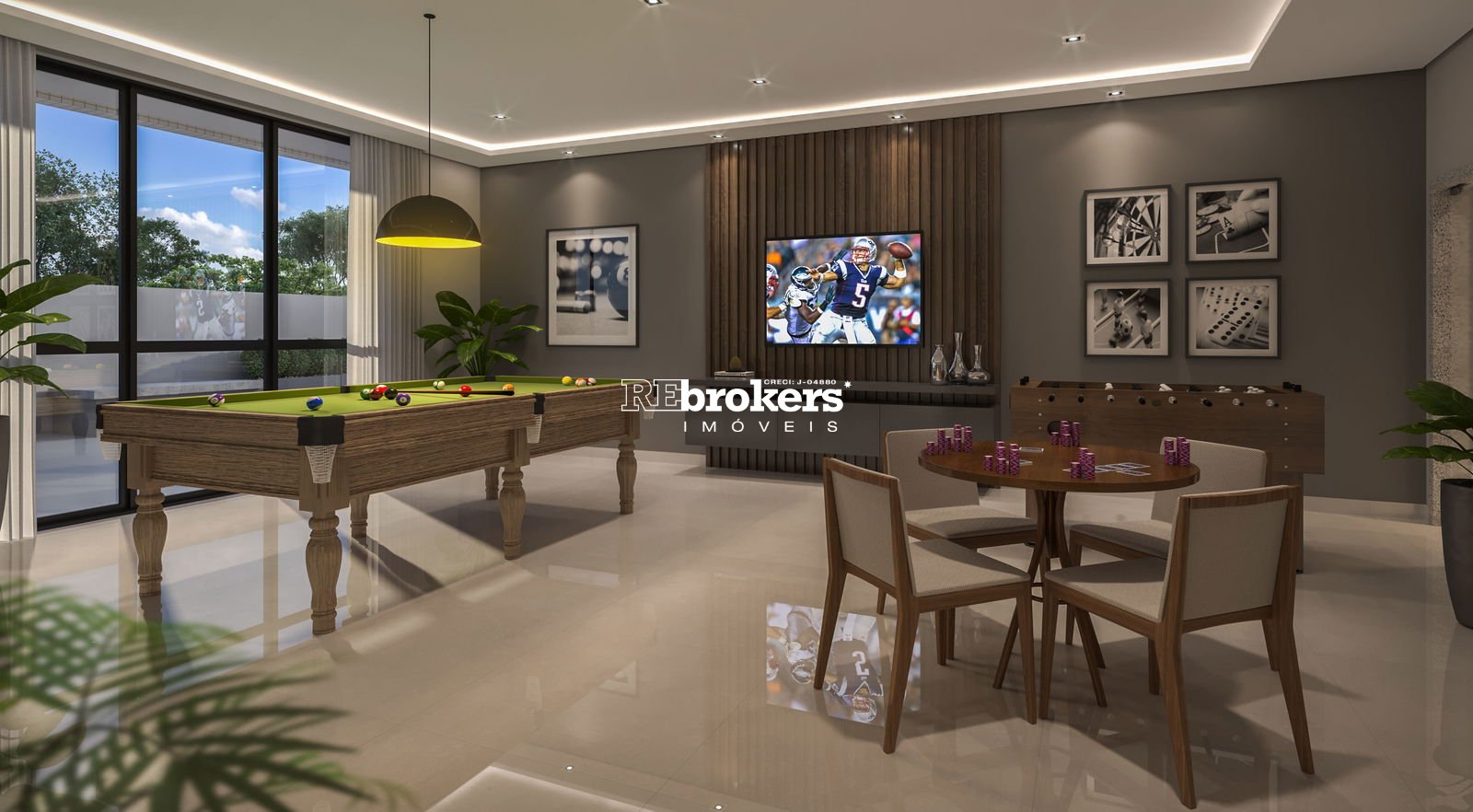 Salão de festas com churrasqueira e salão de jogos